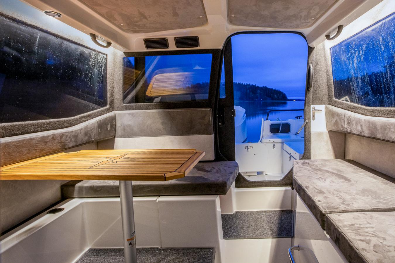 Aina yksilöllisesti sinulle räätälöity hyttivene, jossa mukavuuksista ei ole tingitty. Veneestä löytyy makuutilat neljälle, suojaisat istumapaikat kymmenelle sekä luokkansa suurin kattoikkuna. Vahvistetun peräpeilin myötä veneeseen on mahdollistaa asentaa jopa 350 hv:n perämoottori.